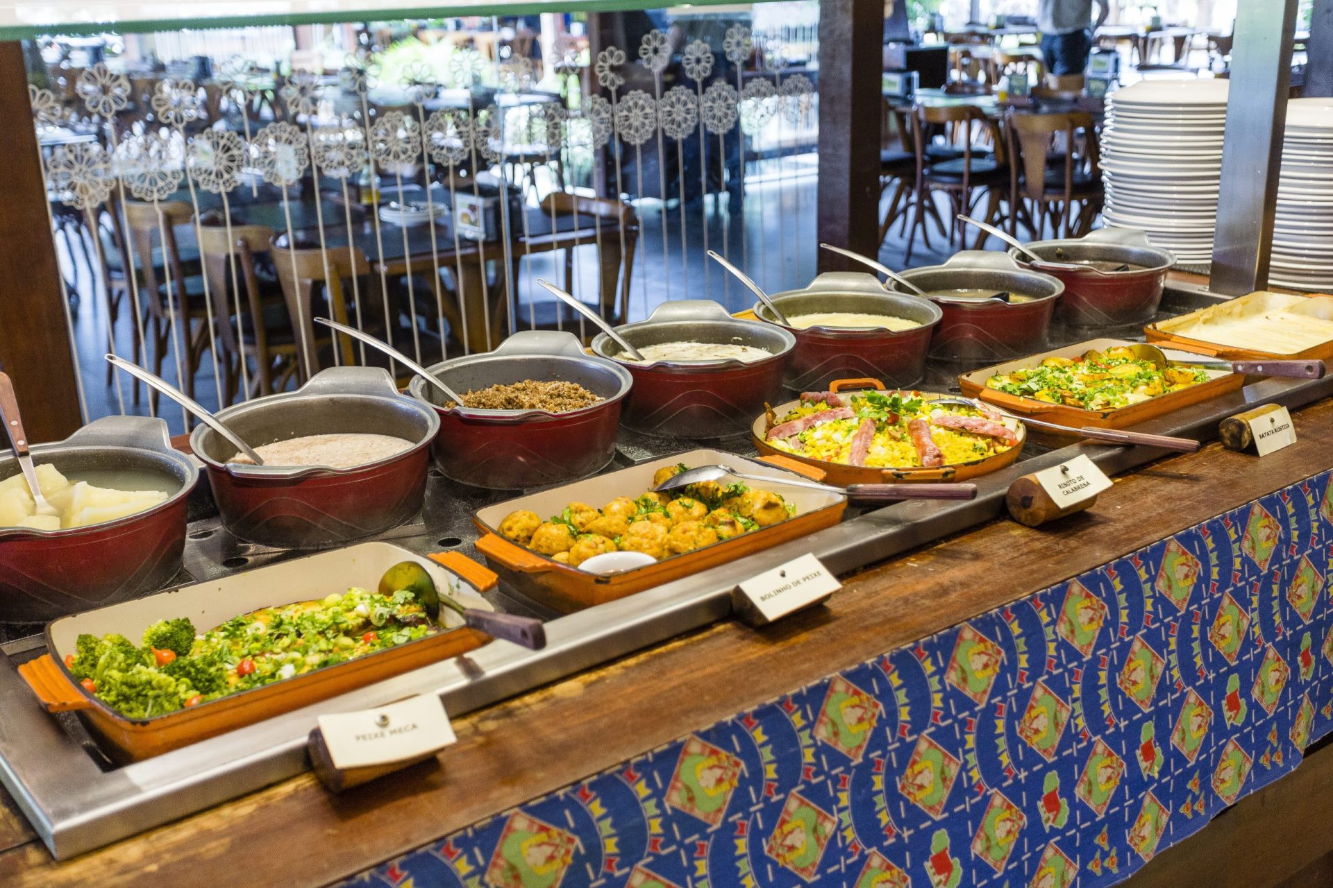 No modelo tradicional, o salão do restaurante pode ficar bastante agitado com os garçons constantemente circulando com pratos e anotando pedindos, o que pode resultar em um ambiente barulhento e por vezes caótico.